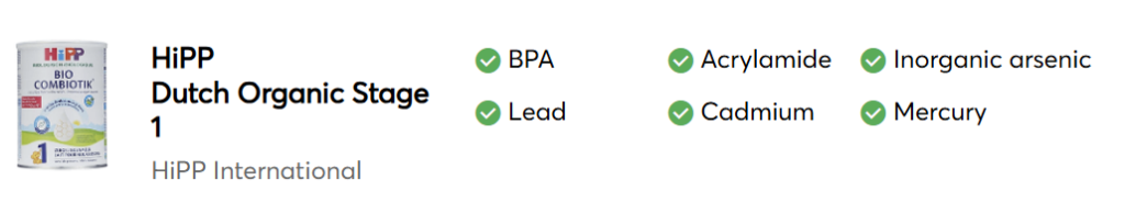 힙(HiPP) 장점: 무전분, 유기농, 미국 컨슈머리포트 중금속 수치 ‘Top Choices’.